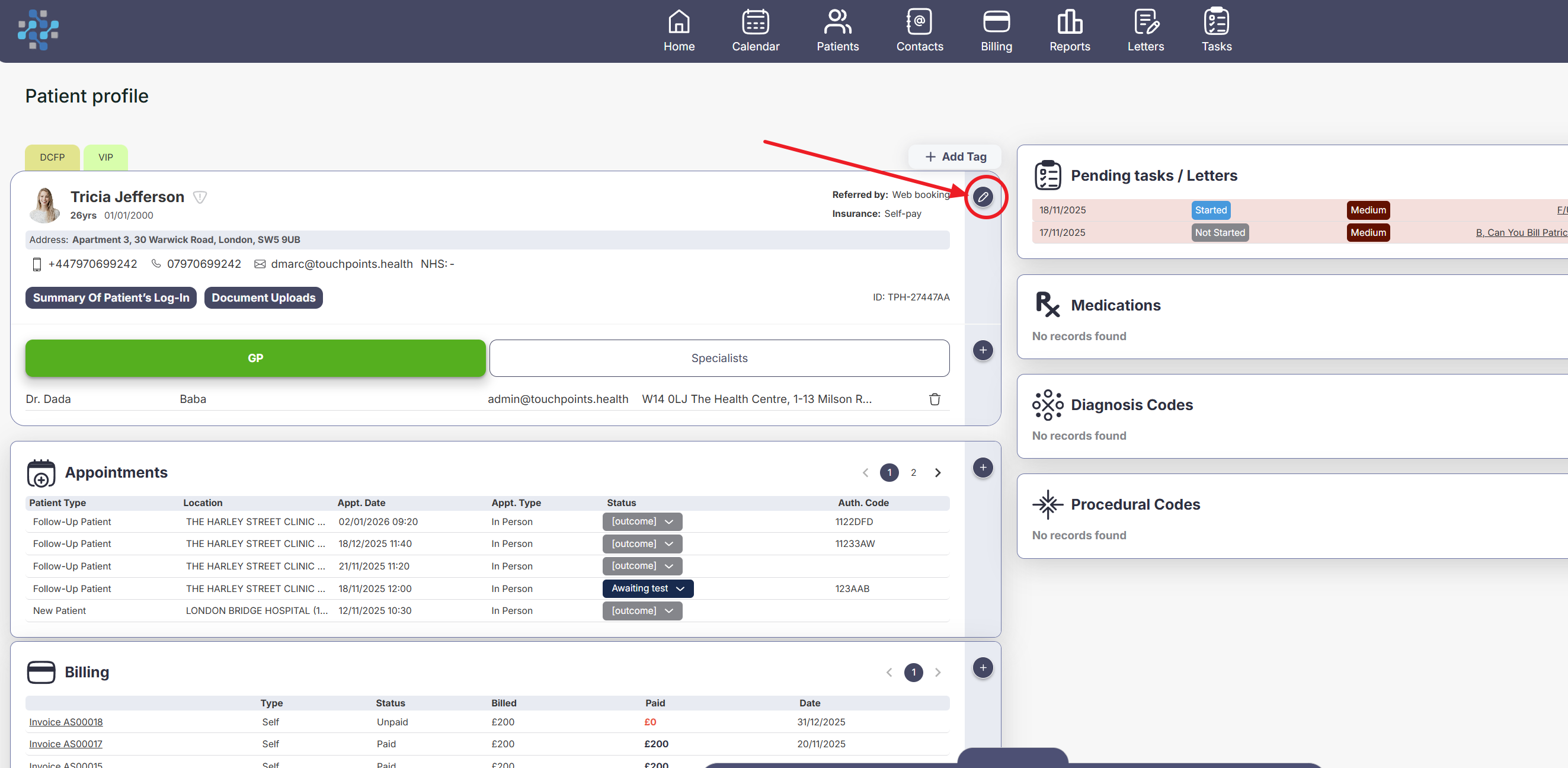 If you need to update or change a patient’s registered details in TouchPoints.health, such as their demographics, address, or contact information, this can be done at any time from the patient profile.