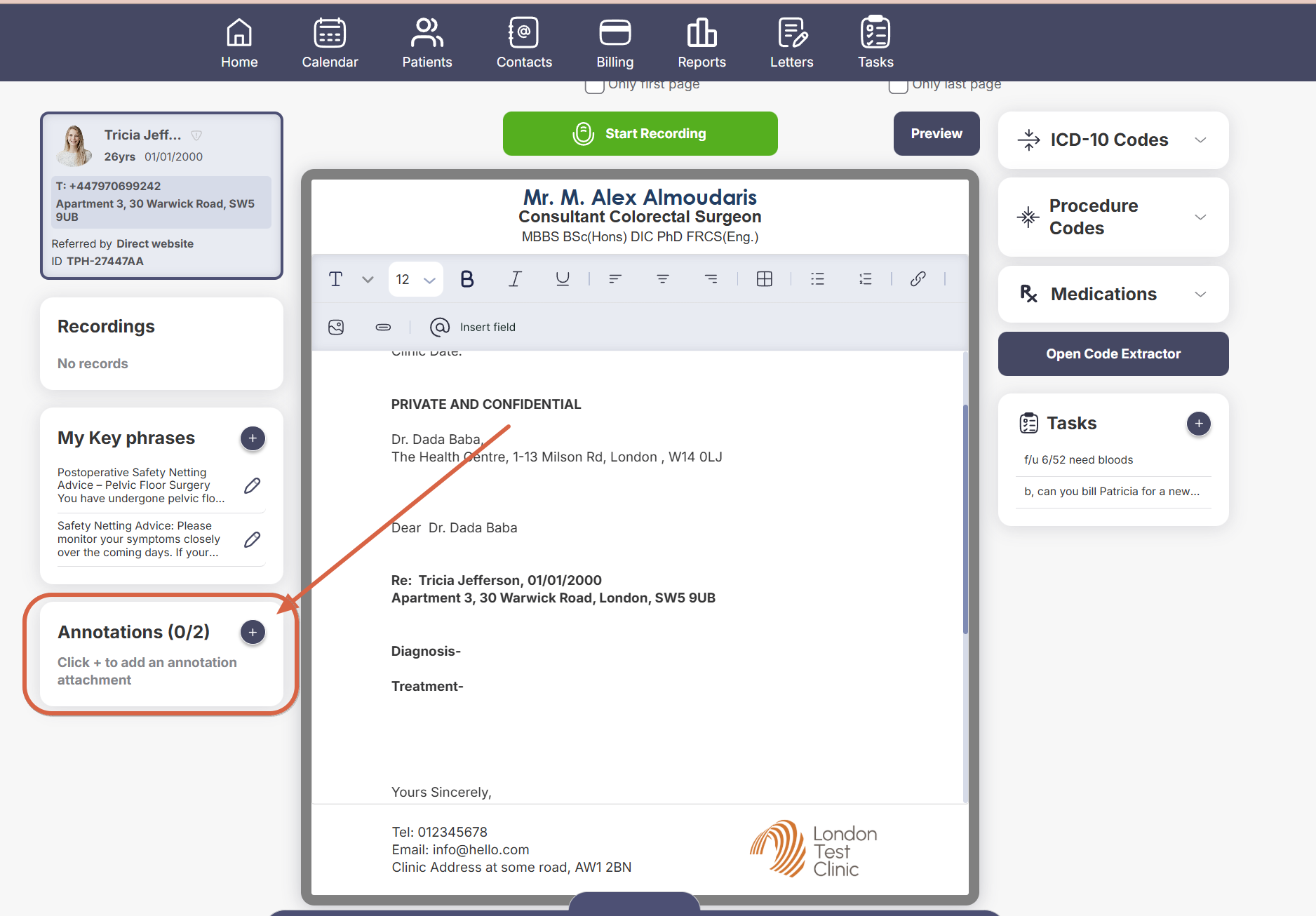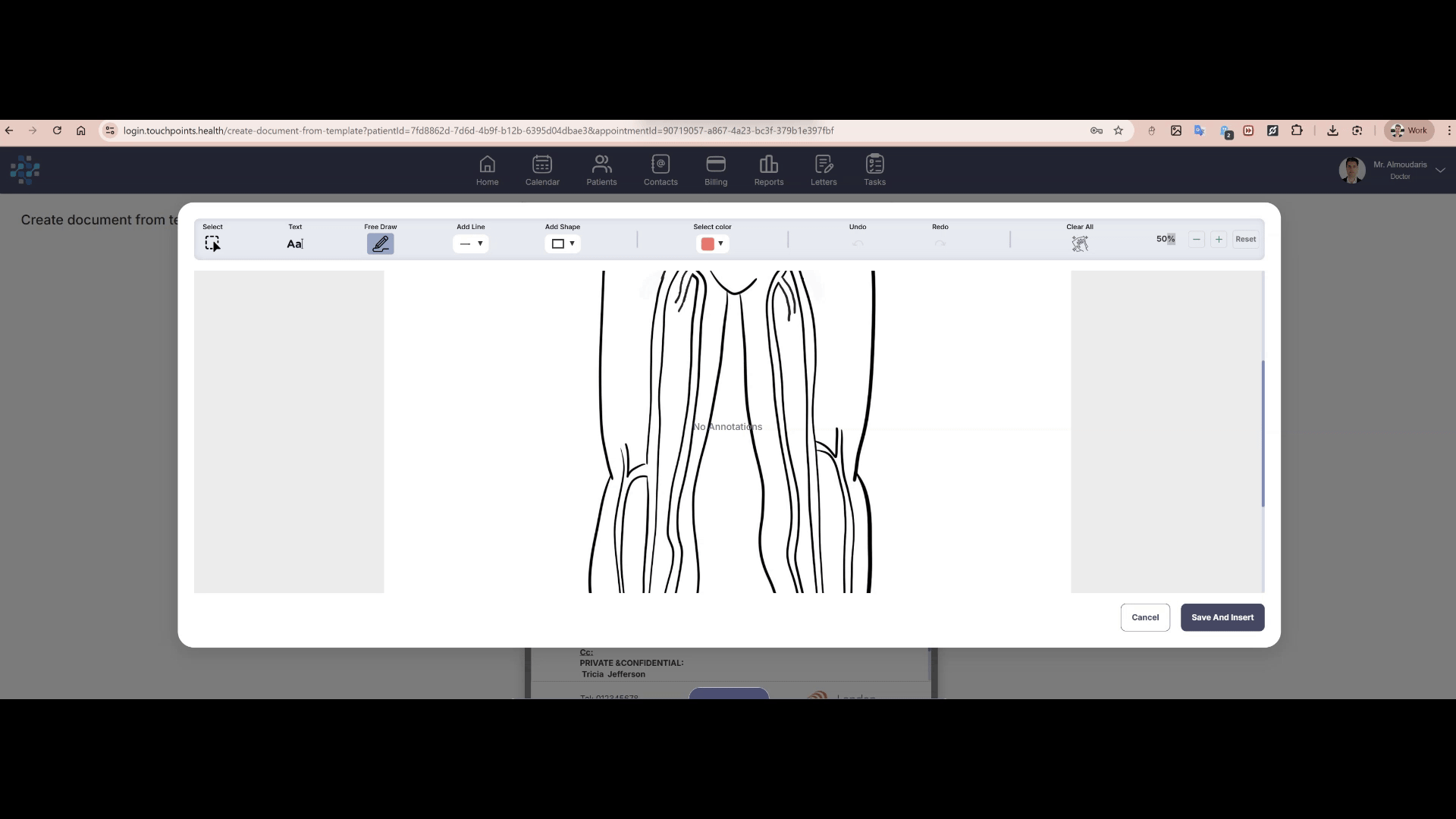 In some cases, you may want to create an annotated diagram without any accompanying letter text. This is useful when you want the timeline to clearly show that the entry is purely an image based clinical record.