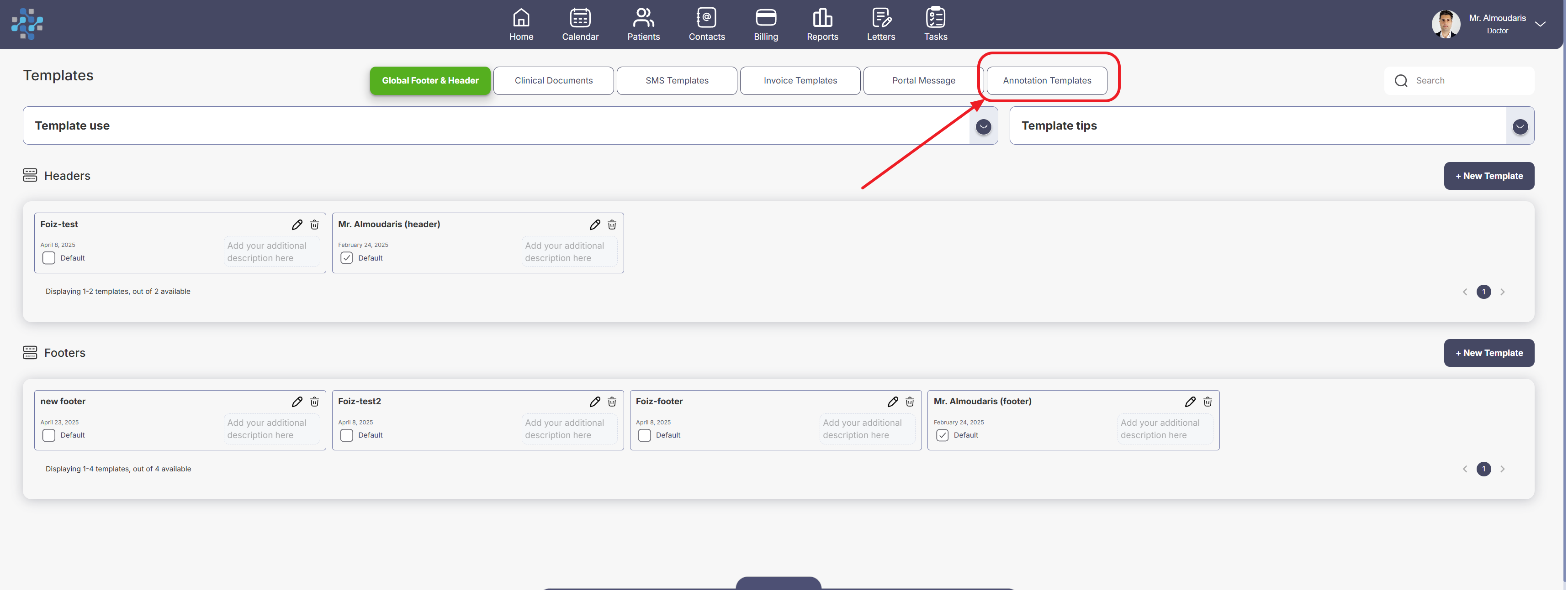 Use clear and consistent naming for annotation templates so they are easy to find.